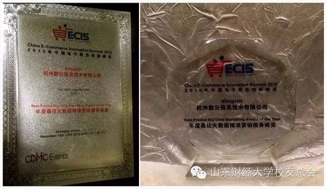 本次峰会还举行了颁奖盛典,以表彰在电商领域做出卓越贡献的企业及个人,为行业发展树立新的标杆。我院97办公自动化专业校友宋向平所创公司杭州数云科技凭借专业的产品体系和优秀的大数据精准营销服务,在评选中脱颖而出,荣获“2015年度最佳大数据精准营销服务商奖”。