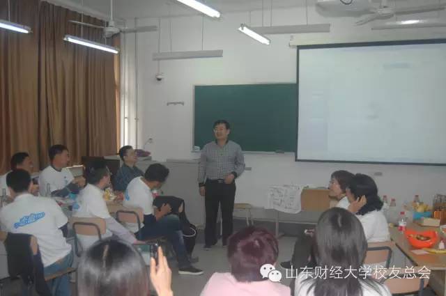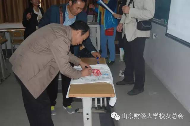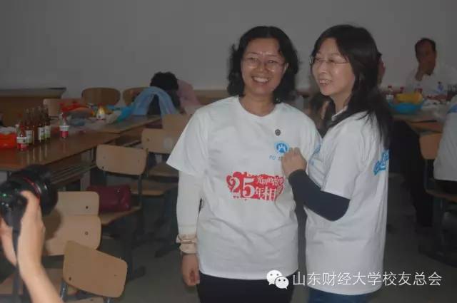 他们在纪念册上签字,他们穿上属于他们自己的衬衫,他们各自为老朋友带上山财大的徽章,小小的教室内,同窗情谊飘逸其间。