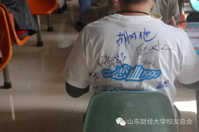 在吃饭的时候,注意到了一件衣服,那件衣服上是每个老同学的签名。这些签名,不是明星的,不是知名人物的,仅仅是一些平凡人的签名,但却价值千金!因为它们承载了太多的岁月,承载了太多的真情,对于今天来的每个人来说,这件衣服,千金不换!