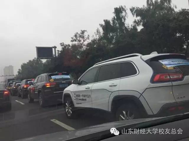 早上八点在省体育中心东侧广场集合后,校友乘坐牧马人车队前往润华集团汽车主题公园,与自驾车前往校友汇合。