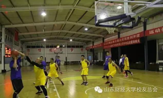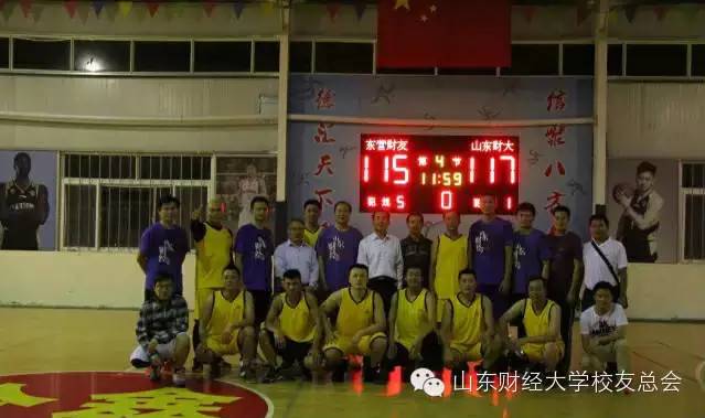 为增进东营校友与母校的感情,牢记母校的培养之恩,促进校友之间、校友与母校之间的交流,应东营校友会邀请,2015年9月18日晚在东营举办了东营校友会与母校篮球队的友谊赛。山东财经大学副校长吴彬教授、山东财大校友办徐彬老师等代表山东财大队参加比赛;东营校友会副会长王新明、体育部部长赵君等校友代表东营校友会队参加比赛。山东财大东营校友会会长马忠堂,副会长兼秘书长巴树青,东营校友会副会长兼常务副秘书长任忠跃出席了比赛前座谈会并观看了比赛。