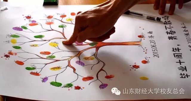 班长董彬拿出签字画卷,金本二班,像一颗种子深深地埋在所有同学心里,四年灌溉十年成长早已成为参天大树,像无形的信仰为他们撑起一片天。那一副别开生面的签字画卷便是一棵树,葱郁的果实由同学们自己用手指画上,每个人都是学校培养出来的一枚成功果实,每个人的脸上都洋溢着幸福的笑容。