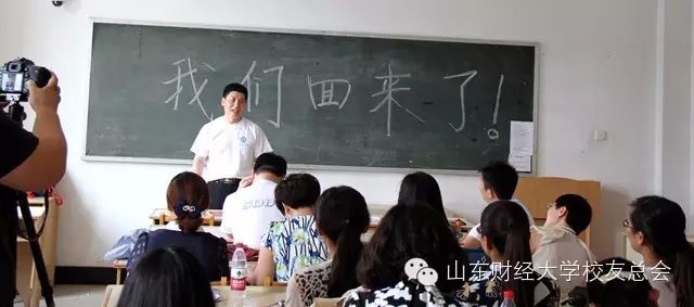 印象深刻的是以为校友把我们山财大的校徽挂在胸前,他说话的时候用手紧紧握住,满怀着对母校的深情,说到动情深处不禁泪含满眶。