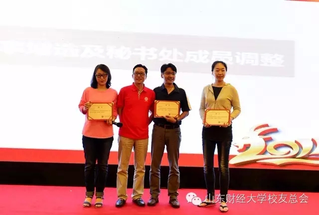 会议增选了校友会理事、副秘书长,秘书处各部长人员进行了调整。会议增选李艳国(95级信息)、王呈祥(96级税务)、王法刚(96级统计)、赵亮(97级国金)、周如刚(98级理财)、姚中彬(99级金融)、常帅(99级会计)、梁胜(00级法学)、柏青(06级国贸)等9人为校友会理事,马超(03级工商)、潘锐(04级财管)、闫晓平(05级财管)等3人为校友会副秘书长。
