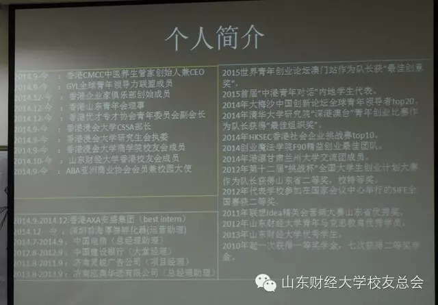 4月28日,张华晨校友代表山东财经大学香港校友会筹备组回母校汇报香港校友会筹备工作,并举行旅港经验分享会。