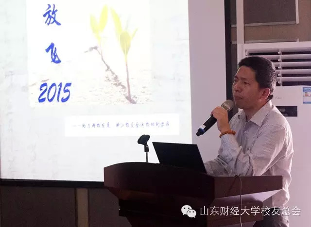 小步点(杭州)新能源汽车有限公司董事长、杭州妙餐饮管理有限公司董事长、众泰新能源汽车副总经理、94级校友施念龙以“助力母校,放飞2015”为题介绍了浙江校友会的概况,欢迎学弟学妹到浙江工作,加入浙江校友会大家庭;他介绍了自己的工作历程、创业经历,鼓励在校学生要珍惜大学生活,充分利用大学资源,学好专业知识,深入了解有关就业、创业的信息,尽早做好职业规划。