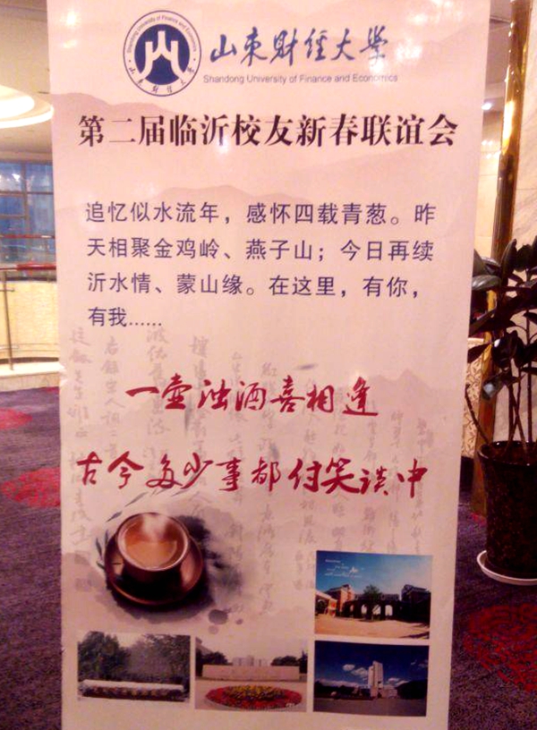 1月24日,山东财经大学临沂校友会(筹)举办第二届年会,来自五区九县、以及部分专程从外地赶回临沂的校友共100余人齐集临沂荣华大酒店,欢聚一堂,回忆求学生涯,共叙校友情谊,畅想美好未来。