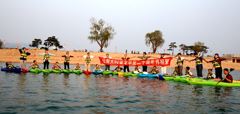 聚会期间,集体畅游雪野湖,同学们再次水上嬉戏,边走边交流,边游戏边递进同学情缘。