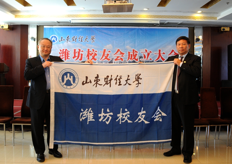 11月2日,山东财经大学潍坊校友会成立大会在潍坊君尚假日酒店举行,来自潍坊市12个县市区的100余名校友代表参加了大会。学校党委书记、校长、校友总会会长刘兴云出席大会并为潍坊校友会授旗。党委办公室主任徐思生、校友工作办公室主任、校友会秘书长耿金波、科长何珅及青岛、河北校友会代表等到会祝贺。上海、云南、甘肃、广西、浙江、宁夏、四川、湖南、东营、淄博校友会及北京、天津、江苏、威海、日照校友会筹备组发贺电祝贺。会议由常务副会长辛立国主持。