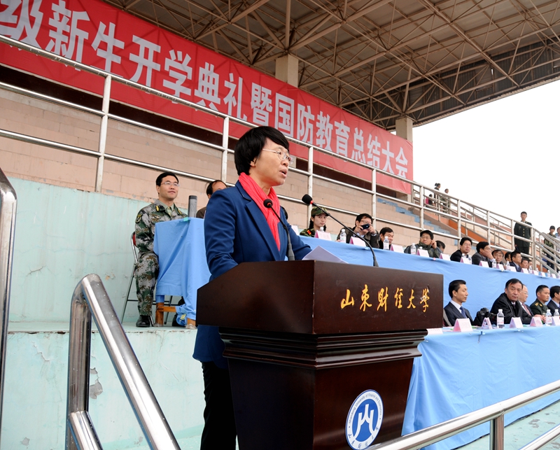 10月31日,山东财经大学2014级新生开学典礼暨国防教育总结大会在明水校区和圣井校区隆重举行。学校领导刘兴云、张东超、聂培尧、綦好东、李明勇、吴彬,承训部队中国人民解放军71939部队副旅长马如超上校,校友代表、省食品药品监督管理局局长马越男、山东润华药业公司董事长郝信东出席大会并讲话。副校长胡文波主持大会。
