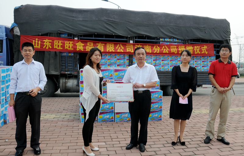 9月26日,山东旺旺食品有限公司济南分公司向学校捐赠产品仪式在圣井校区举行。党委副书记张东超、山东旺旺食品有限公司济南分公司总监陈红出席了捐赠仪式,学校有关部门负责人、旺旺食品有限公司有关部门负责人及教师、学生代表参加了仪式。捐赠仪式由校友工作办公室主任、教育基金会秘书长耿金波主持。