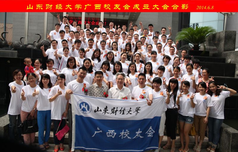 6月7至8日,山东财经大学广西校友会成立大会在南宁金钻国际大酒店隆重召开,来自广西各地的近100名校友代表以及专程从北京、山东等地赶赴南宁的广西籍校友参加了成立大会。青岛校友会常务副秘书长陈明专程到会祝贺,上海、北京等校友会发来贺信。副校长、校友总会副会长胡文波到会发表讲话并为广西校友会授会旗,校友办公室主任、校友总会秘书长耿金波代表校友总会宣布广西校友会第一届领导机构。