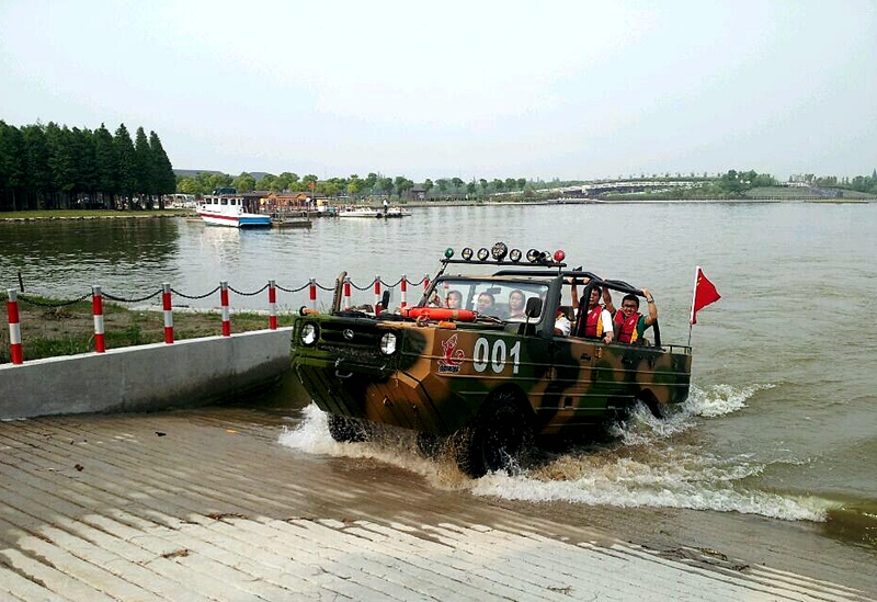 午餐后,按既定计划,首先去的是崇明岛最大的天然内陆湖明珠湖。校友们散步于湖边,畅谈、嬉戏、合影,尽情享受着大自然的馈赠,享受着母校游子聚会的惬意温馨。最后,在明珠湖,还得以有机会体验了少见的水陆两栖车,这种结合了车与船双重性的交通工具,从最初多用于军事,救灾救难,探测等专业领域,到今日在明珠湖与我们邂逅,校友们如孩童般眼前一亮,登车体验,为此次旅行增添了别样欢乐。