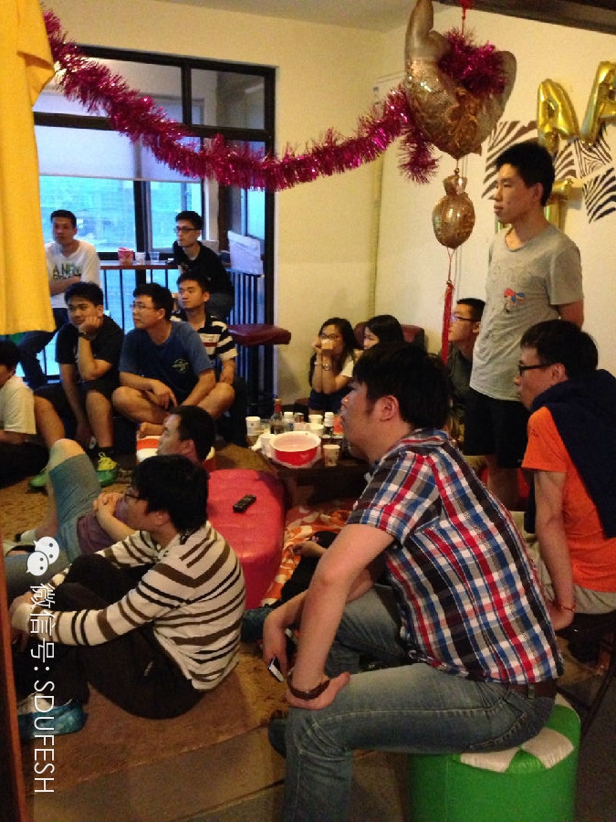 四年一度、翘首以盼的第20届国际足联世界杯在巴西隆重开赛。为了在这特殊的时刻一起来享受足球带来的夏日激情,04财管潘锐、05财管闫晓平组织我们山东财经大学上海校友在LET'S GO休闲吧来共同看球。而激情世界杯,熬夜观赛事什么是必需的?炸鸡?啤酒?爆米花?NO!漫漫长夜,志同道合的足球迷才是最必需的。特别是在同一绿茵场地肆享青春、挥洒汗水的球友;在同一观众席呐喊助威的球迷,曾经青春的律动更能让他们找到共同的话题!