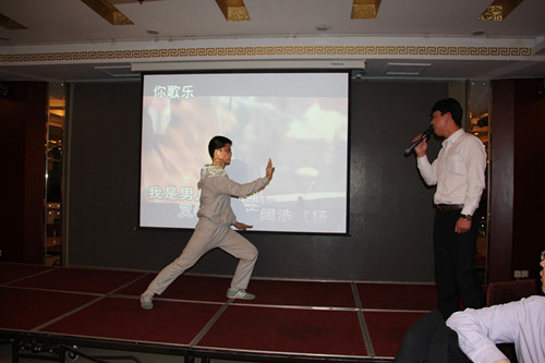 随后,校友们还自告奋勇上台演绎《男儿当自强》等节目,把联谊会引入阵阵高潮。