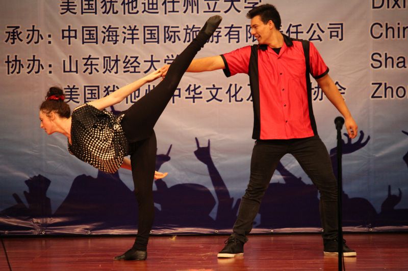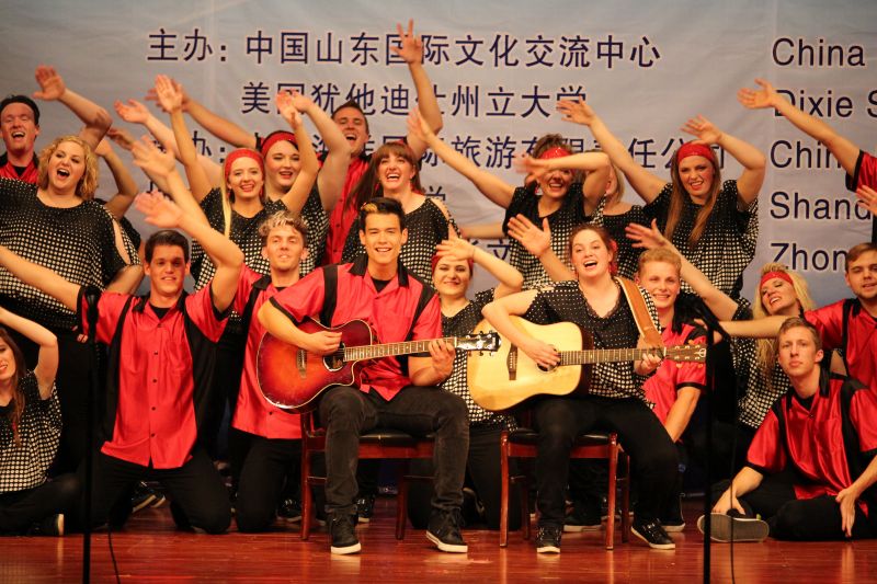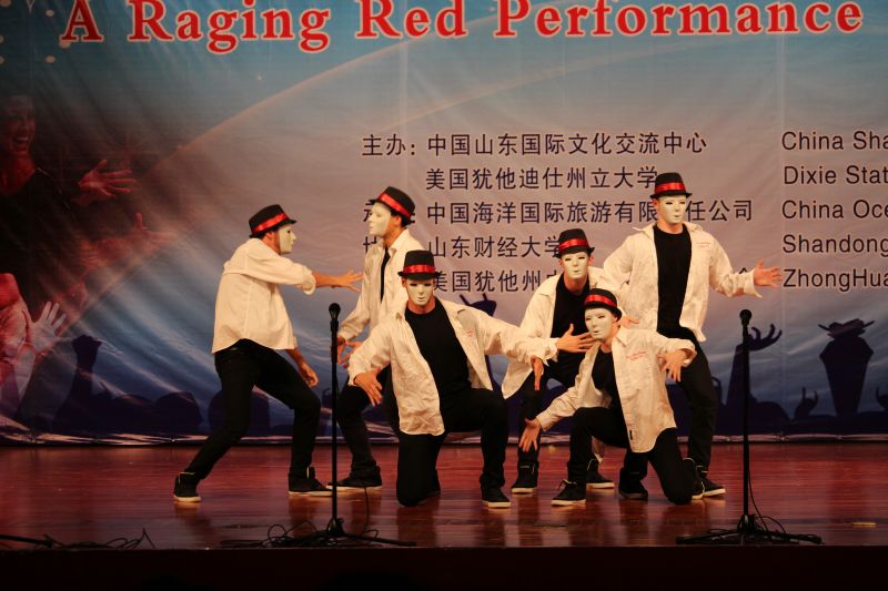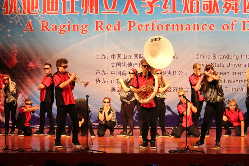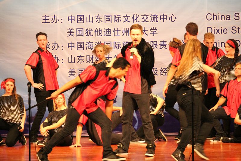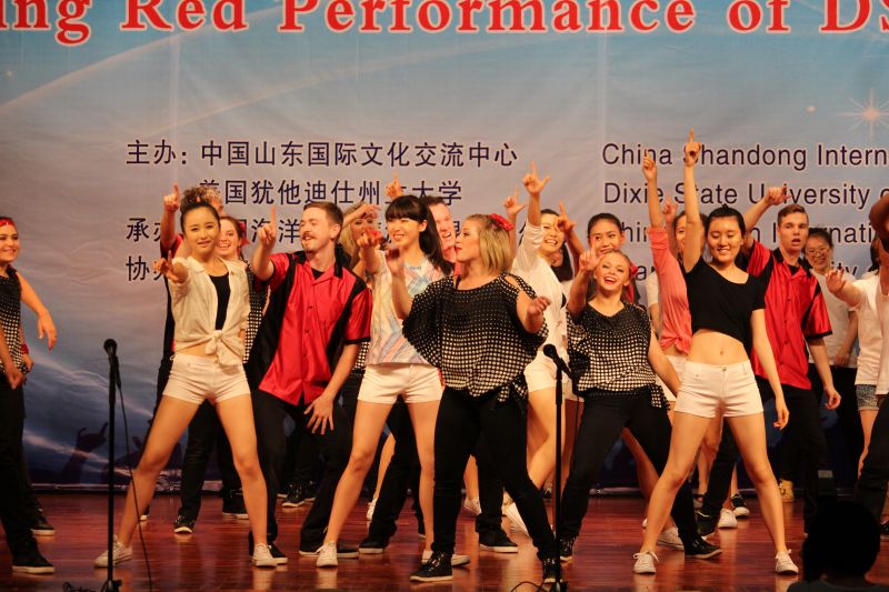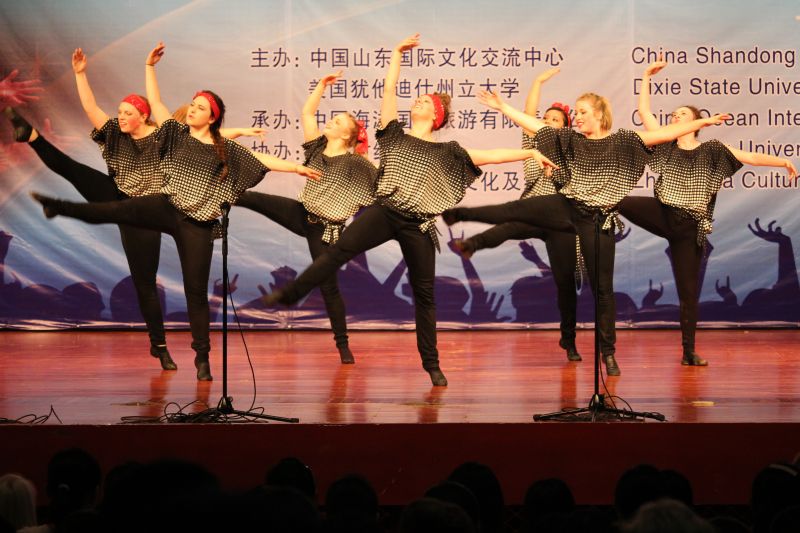 5月21日下午,由校友介绍、校友办公室联系组织的美国犹他州迪克西州立大学“红焰歌舞团”来访演出在舜耕校区礼堂顺利举行。迪克西州立大学行政副校长Paul Morris、迪克西州立大学国际学生事务处主任助理Carole Hulet、海外留学生部主任Kathleen Kinney、教育学院院长Brenda Sabey、世天国际教育集团主席陈建明、山东国际文化交流中心秘书长王洪伟、我校党委办公室、校长办公室、国际交流与合作处、团委、校友办公室、相关学院、部门负责人及1000余名学生到场观看了演出。演出前副校长胡文波会见了来宾。