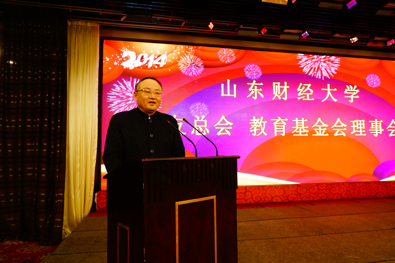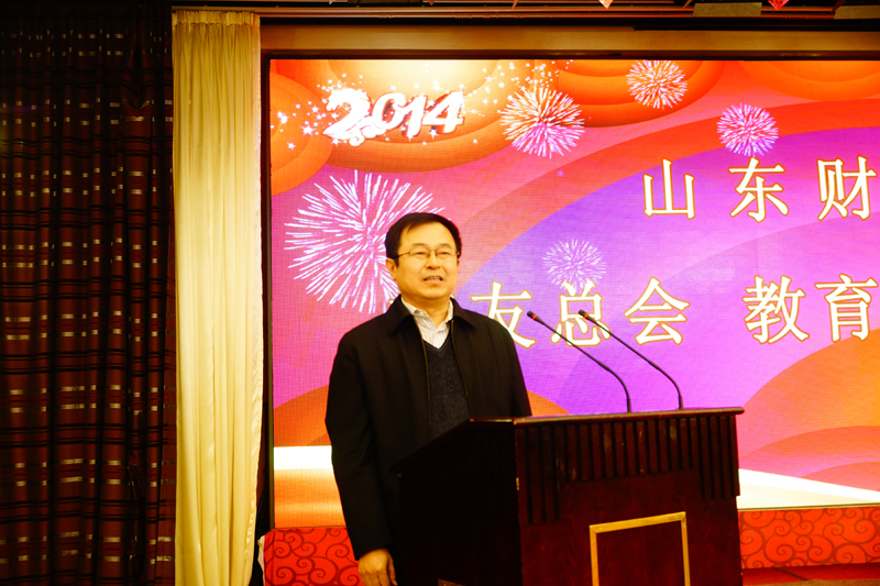 刘兴云在致辞中代表校党委、行政向在座的各位领导和校友致以新春的祝福和亲切的问候,介绍了学校自合并组建以来,在人才培养、科学研究、社会服务和文化传承创新等各项工作,取得的一系列成就。他说,2014年,学校将以党的十八届三中全会精神为指引,认真贯彻落实《山东财经大学发展规划纲要(2014-2020年)》,深入实施“一体两翼战略”,全面推进“特色名校”、“凝心聚力”工程建设,不断深化内部管理体制改革,在“学校与师生员工共同发展”的旗帜下,以饱满的热情、无畏的勇气、坚定的信心和负责的态度,共同开创学校更加美好的未来。