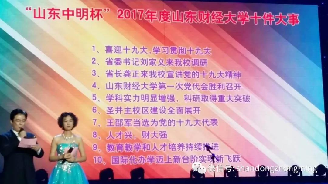 12月29日晚,在“不忘初心扬帆远航”2018新年教职工文艺汇演现场,“山东中明杯”2017年度山东财经大学“十件大事”评选正式揭晓。
