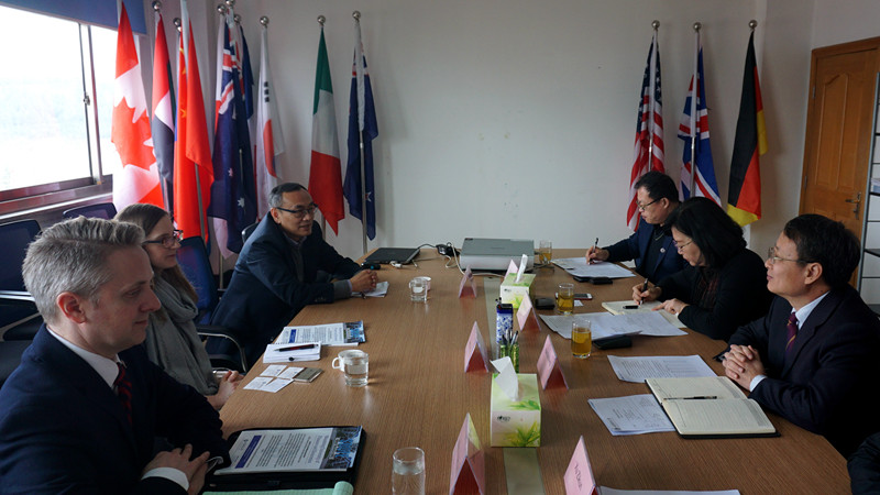 韩作生向客人介绍了学校概况和国际交流情况,充分肯定了双方十年合作取得的成绩。双方回顾了项目合作的历程,就项目相关问题进行了讨论并就引进外方课程和聘请教师来校授课等进行了探讨。