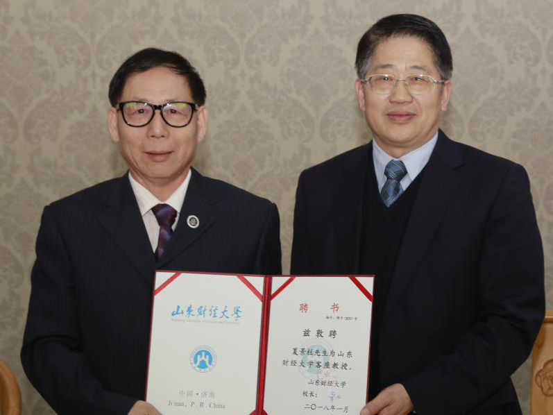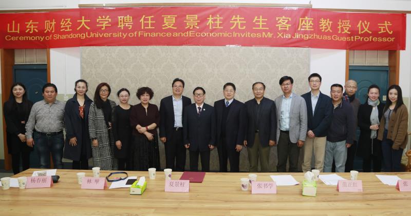 3月30日,学校在燕山校区举行仪式,聘任美国华尔街二号创投公司中国区执行总裁、美国华尔街国际文化传媒集团董事长、美国中美收藏家协会常务副会长夏景柱先生为山东财经大学客座教授。副校长张书学出席活动并为夏景柱颁发聘书。艺术学院领导班子和师生代表、国际交流与合作处有关人员以及来自中央电视台、沃尔德集团的嘉宾参加仪式。