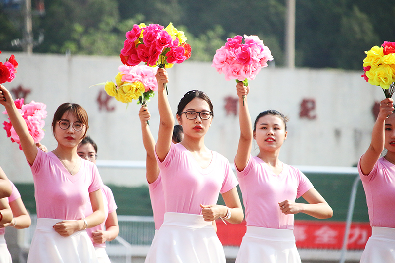 伴随着雄壮的进行曲,在庄严的国旗护卫队引领下,红旗队、花束队、我校各学院学生方队、省财税机关职工方队、我校教工方队高喊嘹亮口号,迈着整齐的步伐依次走过主席台。随后,举行了庄严的升国旗唱国歌仪式。