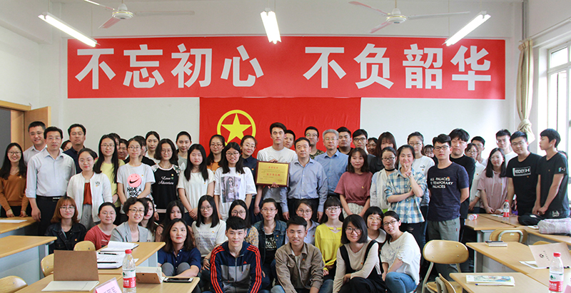 主题团日活动过程中,王邵军还为2016级国际商务中荷班团支部颁发了“全国高校活力团支部”奖牌,并听取了团支部基本情况的介绍和工作汇报。