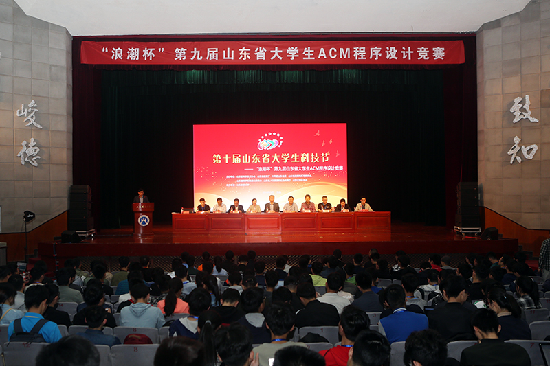 5月5日-6日,由山东省科学技术协会、山东省教育厅、共青团山东省委、山东省发展和改革委员会、山东省经济和信息化委员会、山东省人力资源和社会保障厅和山东省计算机学会主办,我校承办的第十届山东省大学生科技节——“浪潮杯”第九届山东省大学生ACM程序设计竞赛在我校舜耕校区举办。我校副校长张新,浪潮集团执行总裁、山东省计算机学会副理事长冷严凌,山东省计算机学会副理事长石冰,以及省内兄弟院校嘉宾、教练、大赛裁判、企业代表出席开幕式。来自山东省39所高校261支队伍的783名参赛队员和教练员、嘉宾以及裁判员、志愿者约1200人参与并见证了竞赛全过程。