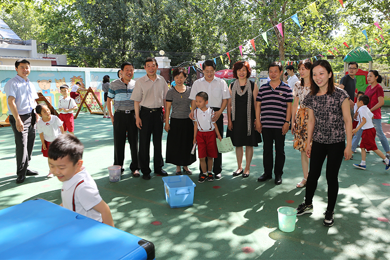 此次六一儿童节恰逢舜耕校区幼儿园建园三十周年纪念,张书学及工会、总务处负责人高兴地在由孩子们“小手印”组合完成的画卷上签名并合影留念。幼儿园教职工表示感谢学校对幼教工作的关心和支持,下一步要强化管理,提高保教质量,把幼儿园办成“让家长满意、让学校满意、让社会满意”的一流幼儿园。