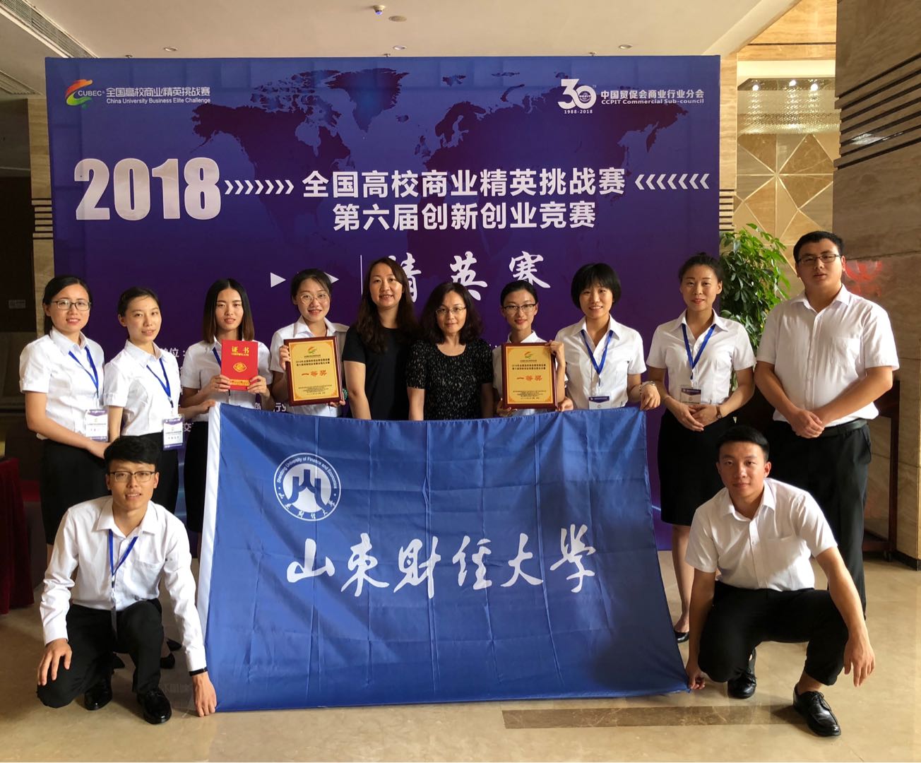 近日,由教育部高等学校经济与贸易类专业教学指导委员会、中国国际贸易促进委员会商业行业分会等共同主办的2018年全国高校商业精英挑战赛第六届创新创业竞赛全国50强精英挑战赛在深圳落下帷幕。由我校管理科学与工程学院何丽老师和李涛老师指导的花语团队和沐易团队分别参加了创客组和创业组的比赛均获一等奖。