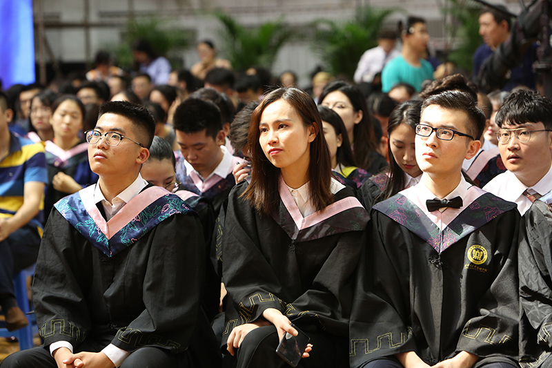 毕业典礼上,省级优秀毕业生、公共管理学院硕士生聂芸梅,2017年“中国大学生自强之星”获得者、已被推免至中国科学院大学经管学院攻读硕士的管理科学与工程学院本科生卢辰昊,作为毕业生代表先后发言,表达了对母校、对恩师、对同窗的感恩和不舍。