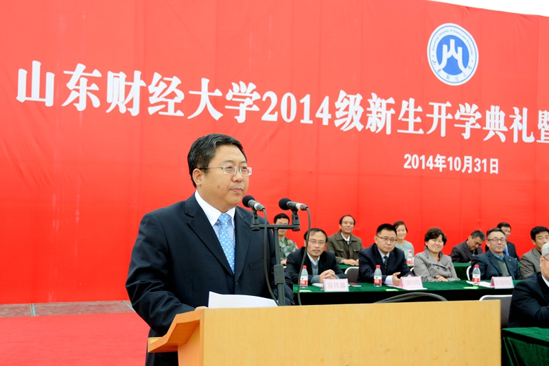 10月31日,山东财经大学2014级新生开学典礼暨国防教育总结大会在明水校区和圣井校区隆重举行。学校领导刘兴云、张东超、聂培尧、綦好东、李明勇、吴彬,承训部队中国人民解放军71939部队副旅长马如超上校,校友代表、省食品药品监督管理局局长马越男、山东润华药业公司董事长郝信东出席大会并讲话。副校长胡文波主持大会。