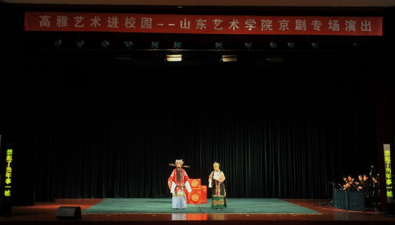 11月11日晚,由教育部、文化部、财政部主办,山东省教育厅、山东艺术学院和我校联合承办的“高雅艺术进校园——山东艺术学院京剧专场演出”在我校舜耕校区礼堂举行。校党委副书记车滨、山东艺术学院党委副书记孔祥华出席活动。我校800余名师生观看了演出。